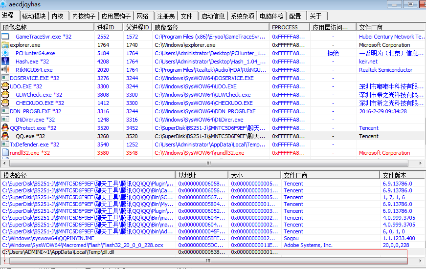 案情升级传送门:关于近期出现的QQ自动加好友的分析2.0 小白专用: QQ自动加好友免疫补丁-三国版本 最近网友说自己的QQ上会自动添加好友,而且还是各种MM,讲真都没经过哥同意就加上了,这样好吗? 下面我们就看看这些好友是怎么来的。 QQ自动加好友分析: 问题现象:登录QQ之后会自动地添加好友 分析过程:登录QQ之后使用PCHunter 检查QQ.exe 下面挂载的DLL 通过OD来分析一下这个可疑的dll