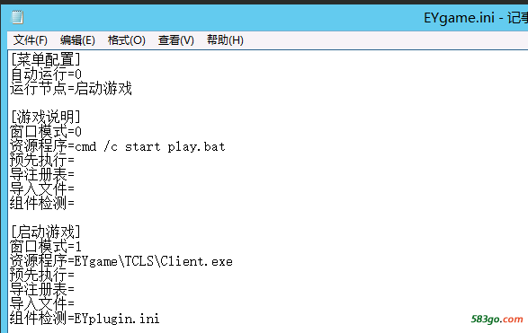 分析:运行pchunter工具,然后从游戏菜单--右键--打开目录,手动运行menu.exe,发现程序运行后马上退出了,然后查看游戏目录下的,EYGames.ini中配置的资源程序执行为play.bat