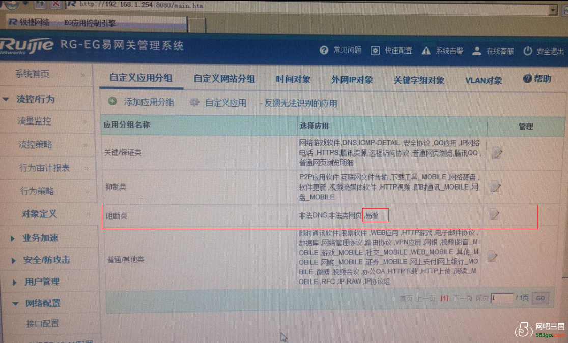 问题现象: 维护的网吧联系说出现游戏未更新的现象,查看服务器发现更新服务提示异常,如下图所示 排查过程: 1、测试外网连通性,通过ping以及下载其他软件均无问题 2、做DNS检测,未发现异常状况 3、联系易乐游的客服查后台账号,无异常情况 4、联系易乐游的技术客服查看软件的日志文件,发现连接外网时出现阻断现象,因此怀疑路由器策略导致。于是着手检查路由器的策略,在流控策略中没有发现哪条策略会阻断平台的更新流量,于是继续排查连接数等设置,在对象定义中看见了如下图所示定义 至此问题解决 (后来联系路由器的客服询问这种情况是不是因为下载流量过大导致默认自动添加进了阻断类别,客服给出的答案是:可能是你们下面的技术员误添加) |