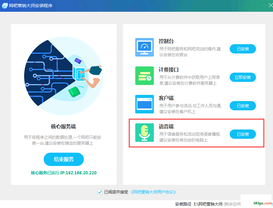 营销大师 安装部署 可以使用快捷安装,或者单独下载语音端安装包。