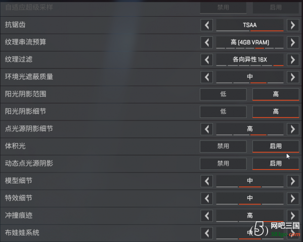 Apex英雄这个游戏官方给出来的配置需求并不是很高,最低配置为GT640所以,由此可以看来,比当初的吃鸡优化要好太多倍了。以下是Apex英雄各显卡60帧画面设置推荐,主要面向N卡,可以参考。 750TI ![]() 970 ![]() 1050Ti ![]() 1060(6G) ![]() 1070 ![]() 以上为各类显卡在游戏内的设置图,以供参考. 网吧统一设置游戏效果方法可以参考这个帖子:http://www.583go.com/article-3285-1.html 很多玩家都发现《Apex英雄》的帧数是有限制的,而硬件配置强大的玩家都想要解除这个帧数的限制,以下是修改原帧数上限144方法: 首先需要在游戏内显示出来帧数,这个设置方法和steam平台其实差不多,在origin平台的设置中打开帧数显示即可 ![]() ![]() 接下来则是对Apex添加参数以解除帧数上限: 在游戏库中找到Apex这个游戏,然后右键游戏属性,选中进阶启动选项,在命令列引数下的框里输入以下代码“+fps_max unlimited”保存即可 再来打开游戏可以看到此时的FPS在游戏内已经可以突破144达到了183.![]() 后续是相关代码添加后的效果: +fps_max unlimited 解除帧数上限不然的话就会锁144 +high 以CPU高优先程度启动游戏 +novid 略过动画 +nomenuvid 禁止主选单背景动画 +fullscreen 以全萤幕模式启动游戏 +windowed 以视窗式启动游戏 +noborder 以无边框模式启动游戏 +height/-width 设定游戏的解析度 +cl_showfps 2 显示FPS在左上角 +cl_showpos 2 在左上角显示有关玩家位置的资讯,例如当前的速度 +m_rawinput 1 启用滑鼠原生输入 |